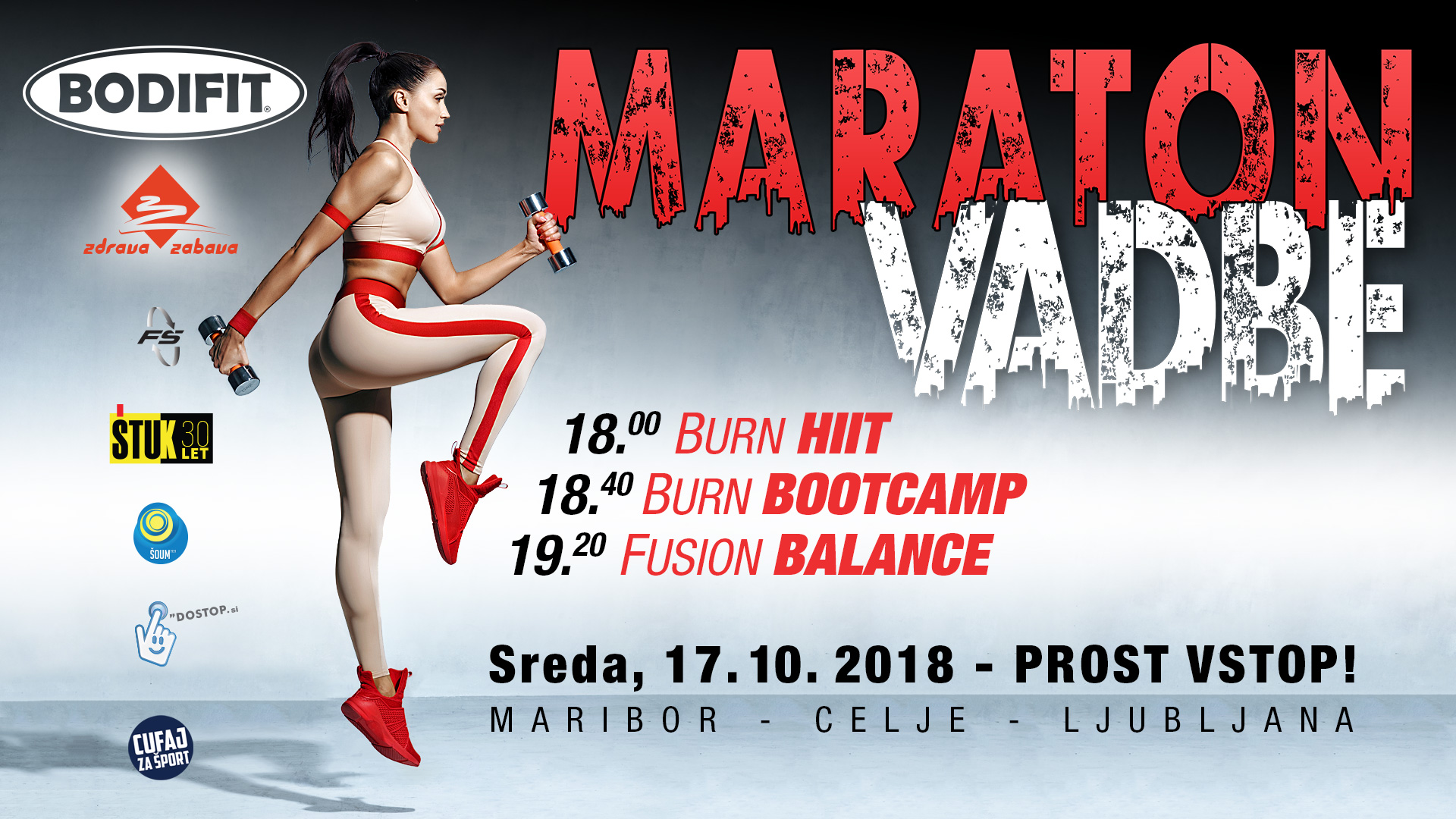 Kljub temu, da smo se odlično razgibali na 1. BODIFIT ŠVIC FESTu pa se spodobi, da začetek sezone obeležimo s tradicionalnim in brezplačnim MARATONOM VADBE, ki bo potekal na Štuku v sredo, 17. oktobra od 18h naprej.