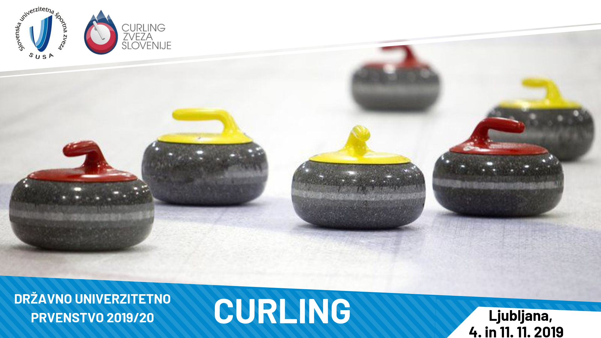 Slovenska univerzitetna športna zveza v sodelovanju z Curling zvezo Slovenije prireja državno univerzitetno prvenstvo v curlingu, ki bo 4. in 11. 11. 2019 v ledni dvorani Zalog, Hladilniška pot 36, 1000 Ljubljana.