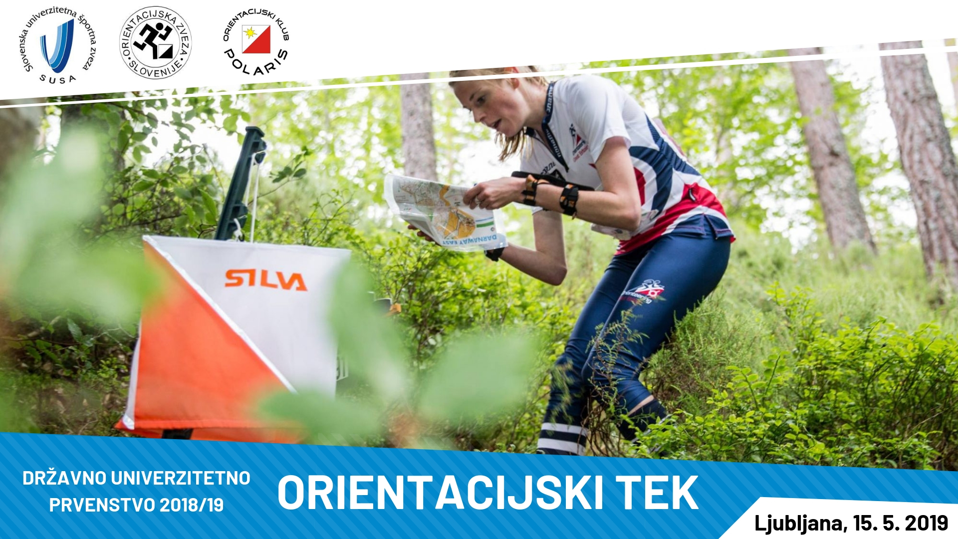 V sredo, 15. 5. 2019 bo na Rožniku, v Ljubljani, potekalo državno univerzitetno prvenstvo v orientacijskem teku za študijsko leto 2018/19. Tekmovanje organizirata Slovenska univerzitetna športna zveza(SUSA) in Orientacijska zveza Slovenije(OZS), izvajalec tekmovanja Orientacijski klub Polaris Ljubljana. Tekmovalo se bo na sredni in daljši progi, kategorije pa so poleg spola razdeljene na študentko rekreativno in študentsko tekmovalno kategorijo ter na kategorijo zaposlenih. Predprijave se zbirajo do torka, 14. 5. 2019, do 12:00.
