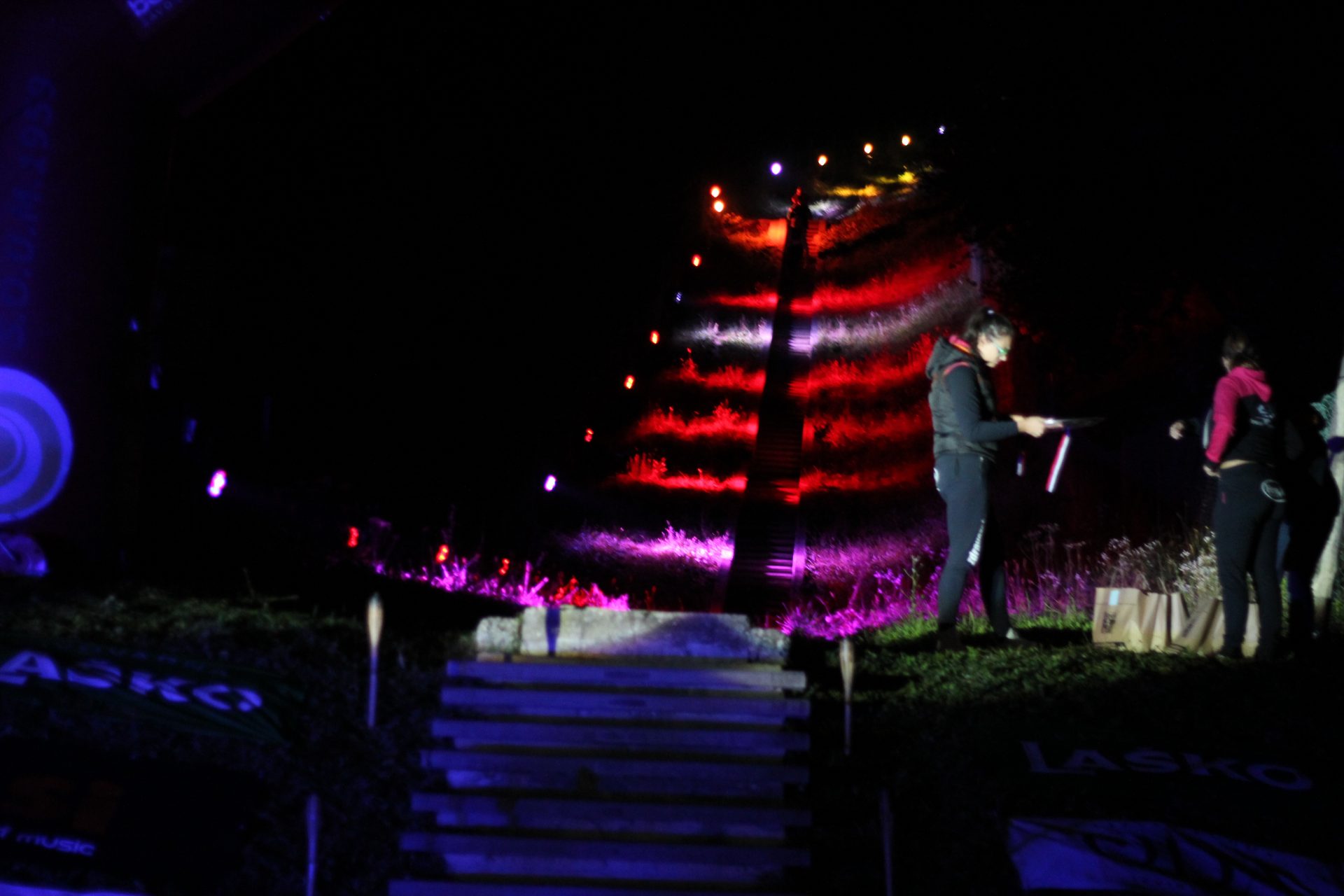 Tekačem pot osvetljujejo svetlobni efekti, kljub temu, da ima najboljši tekač neverjeten rekord 1:44,20 pa je pomembno sodelovanje in ne zmaga. Premagati 455 stopnic, s tekom, hojo, plazenjem ali kombinacijo vsega trojega je namreč največji uspeh.