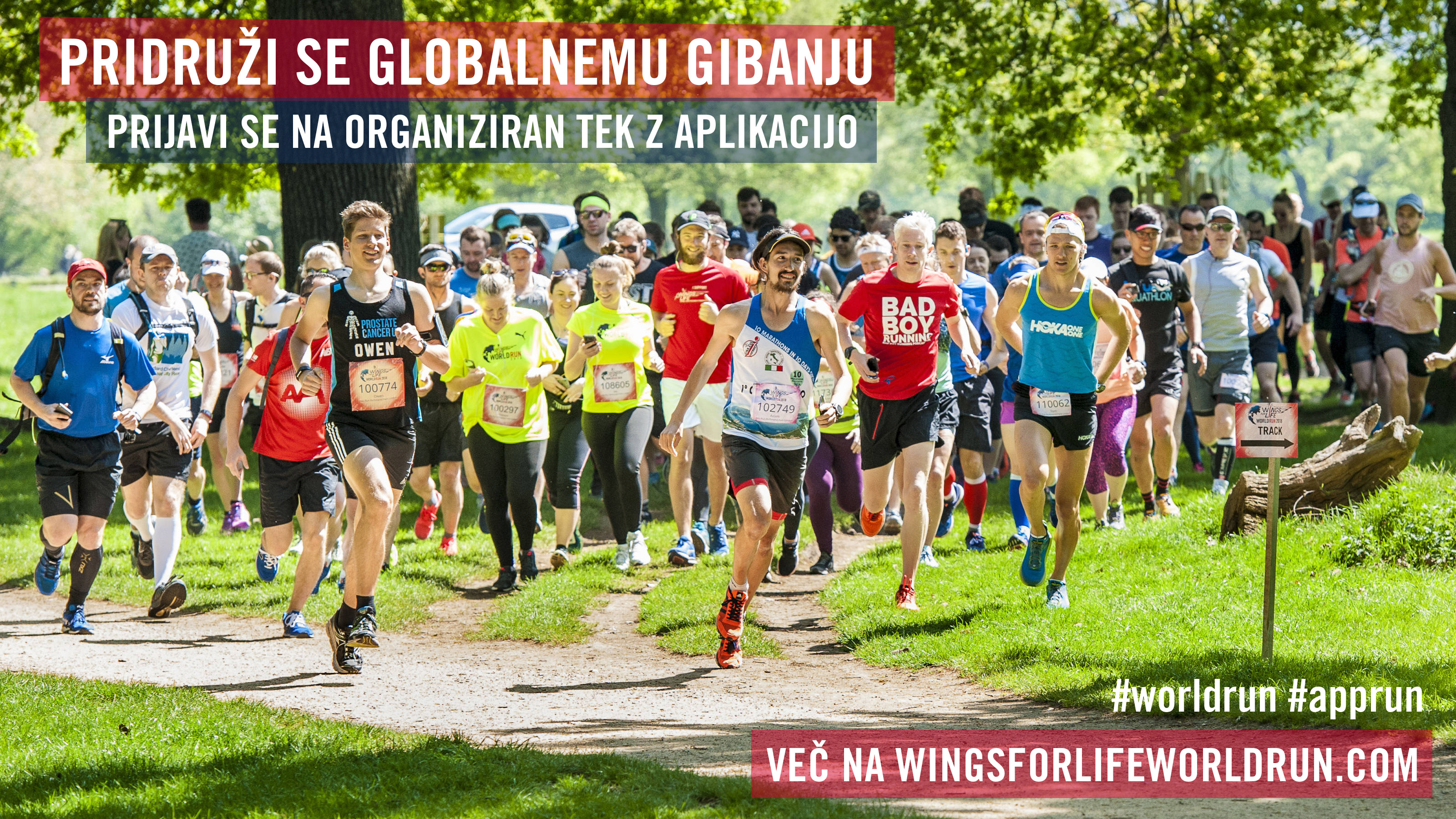 Wings for Life World Run je edinstveno globalno tekaško tekmovanje, ki hkrati poteka po vsem svetu in pomaga iskati rešitev za na milijone ljudi, ki so se zaradi usodnega trenutka znašli na invalidskem vozičku. Z udeležbo prispevate sredstva za najnaprednejše raziskave na področju hrbtenjače. 100 % startnin in donacij je namreč namenjenih fundaciji Wings for Life, ki financira iskanje zdravila z željo, da ljudi na invalidskem vozičku znova postavi na noge.