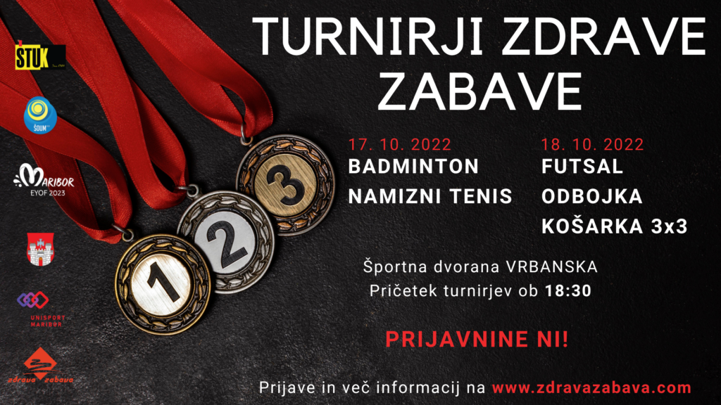 Turnirji Zdrave Zabave(namizni tenis in badminton)- razpis 2022RAZPIS: futsal, košarka 3×3, odbojka