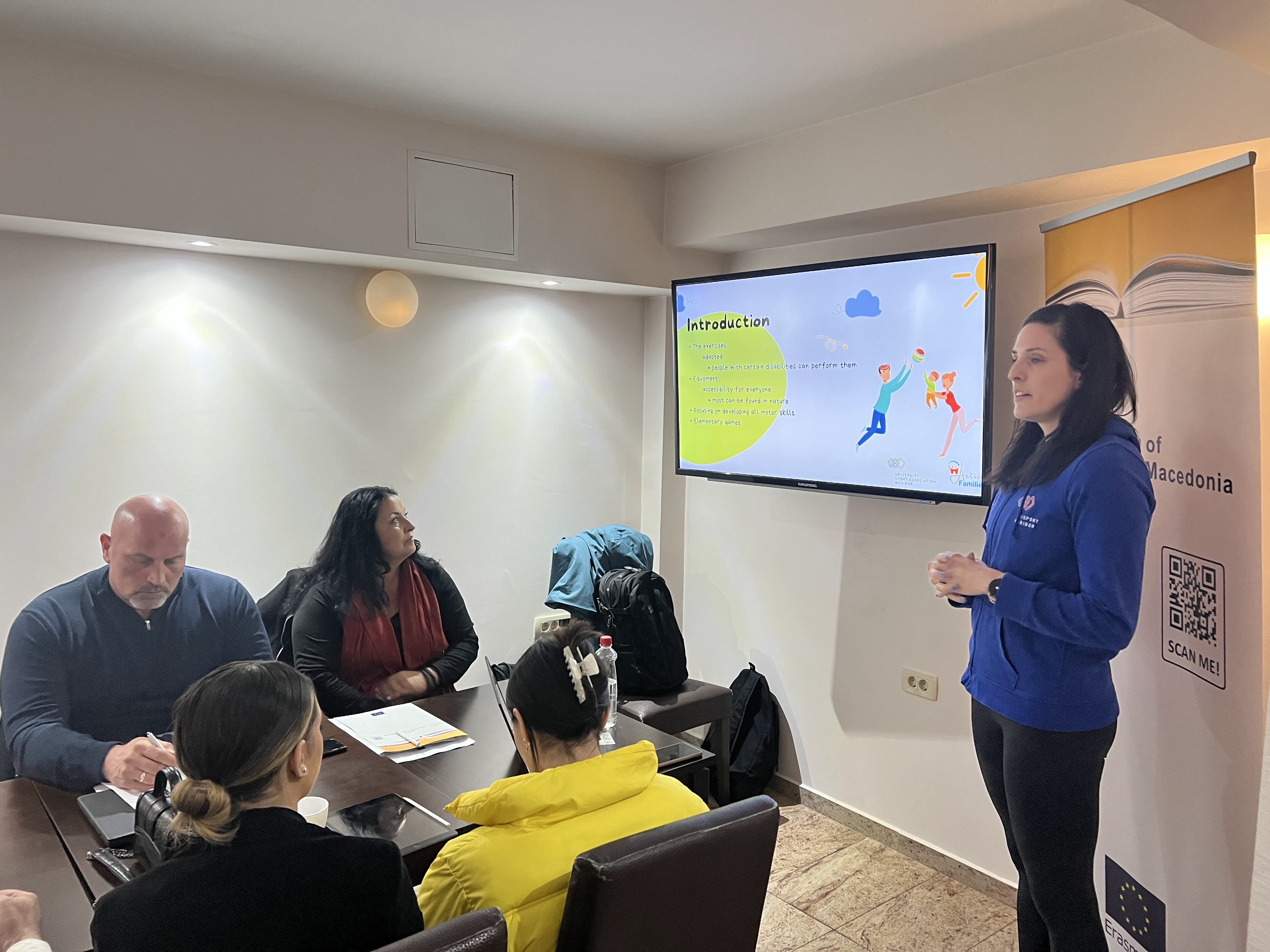 V Hotelu Vlaho v Skopju, Makedonija, je prejšnji mesec med 3. in 4. 4. 2023 potekala delavnica v sklopu projekta Erasmus+ Sport “Active Families” (številka projekta 101089489). Glavni namen delavnice je bil predstaviti smernice, ki so jih razvili partnerji projekta Active families, predstaviti svoje sklope aktivnosti, s katerimi želijo spodbujati vključevanje družin in družin z gibalno oviranimi družinskimi člani v športne aktivnosti ter pridobiti povratne informacije športnih strokovnjakov iz Slovenije in Severne Makedonije o predstavljenih aktivnostih, da bi jih lahko izboljšali in prilagodili potrebam ciljne publike.