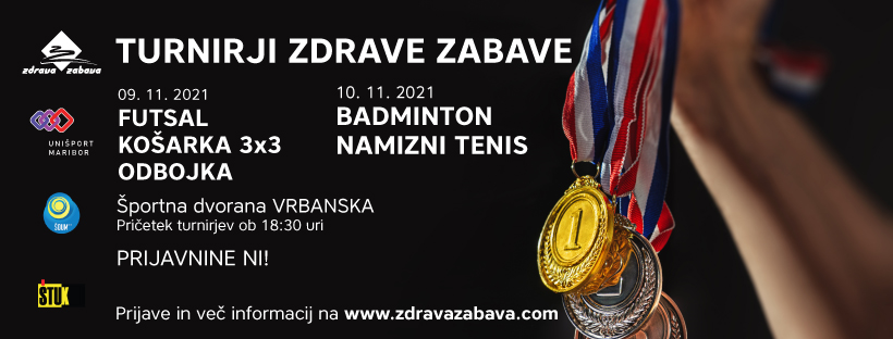 V torek, 9. 11. 2021 bo od 18:00 ure naprej potekal ZDRAVA ZABAVA TURNIR v KOŠARKI 3X3, ODBOJKI MEŠANIH EKIP in FUTSAL v Športni dvorani Vrbanska. V sredo, 10.11.2021 pa se bodo lahko pomerili tekmovalci v BADMINTONU in NAMIZNEM TENISU, od 18:00 dalje. *Razpis najdete na dnu novice.*